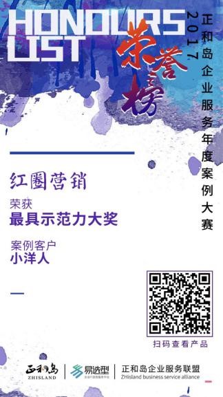 其中的正和島企業(yè)服務(wù)案例大賽評(píng)選,紅圈營(yíng)銷(xiāo)憑借成功服務(wù)于中國(guó)馳名品牌小洋人的案例,獲得了“最具示范力”大獎(jiǎng),紅圈CRM同時(shí)成功入選億+計(jì)劃二期,彰顯了紅圈營(yíng)銷(xiāo)在企業(yè)服務(wù)領(lǐng)域的超凡實(shí)力。