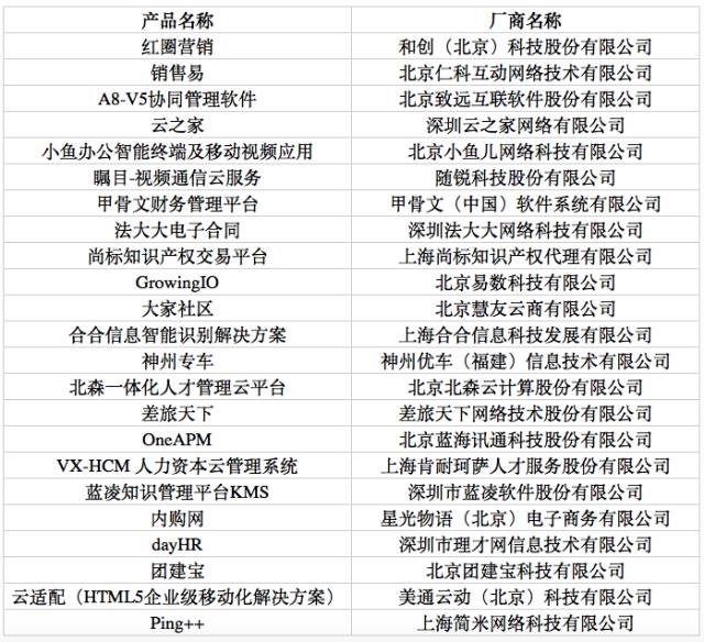 14進1的入選比率 首批入選產品皆是企業級服務領域明星