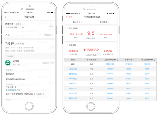 值得一提的是,銷售代表提交的實時數據,紅圈通都能自動生成相應的數據報表,幫助貴州百靈及時了解市場動態,做出科學決策。例如,在紅圈通自動生成的客戶、產品、業務和員工行為等數據報表中,貴州百靈可以結合員工的拜訪數據、產品的上柜數據以及訂單金額等,對拜訪上柜質量進行分析,從而有針對性地優化市場策略,推動銷量提升。