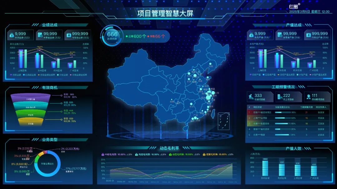 另一方面,項目大屏通過超大的展示畫面、豐富的視覺效果、使得大屏在企業對外接待中廣泛使用,是展示企業實力和信息化管理水平有效工具,可助力工程企業做項目承接談判。