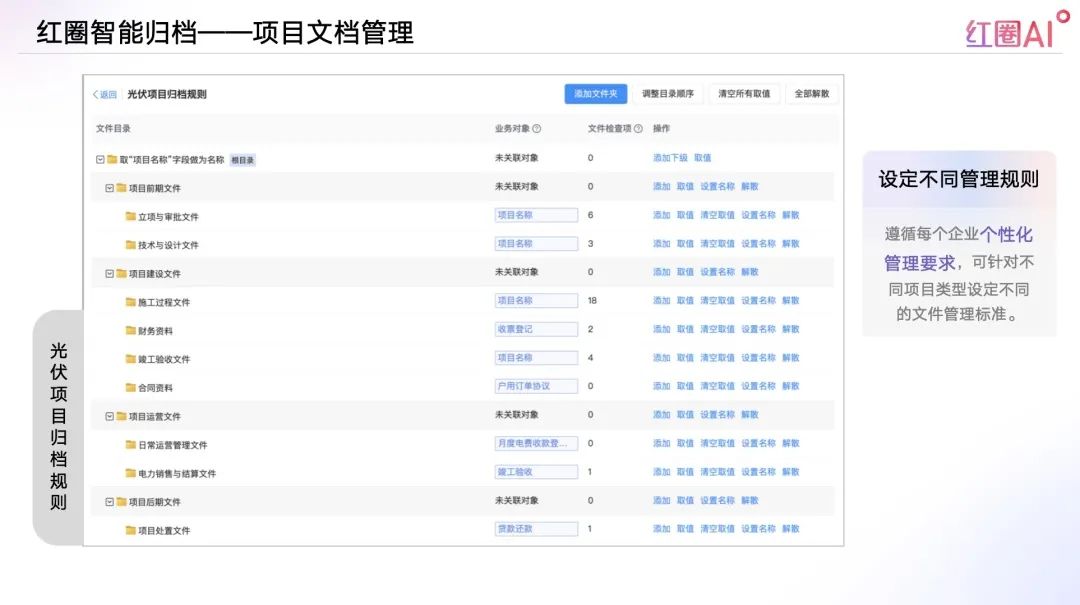 AI可根據(jù)遵循每個(gè)企業(yè)個(gè)性化管理要求,針對(duì)不同項(xiàng)目類型設(shè)定不同的文件管理標(biāo)準(zhǔn);