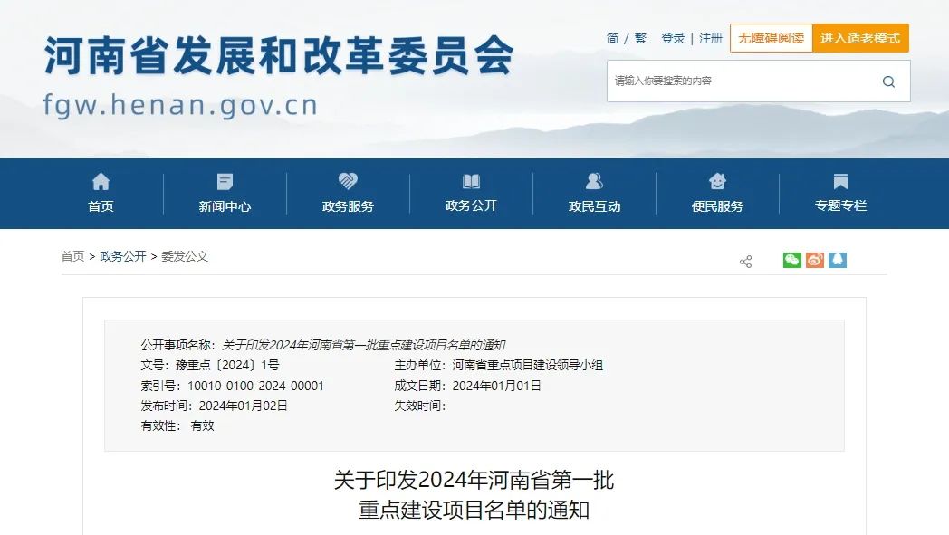 點擊查看完整項目清單:2024年河南省第一批重點建設(shè)項目名單
