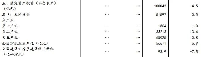 分產業看,第一產業投資1804億元,同比增長1.0%;第二產業投資33213億元,增長13.4%;第三產業投資65025億元,增長0.8%。