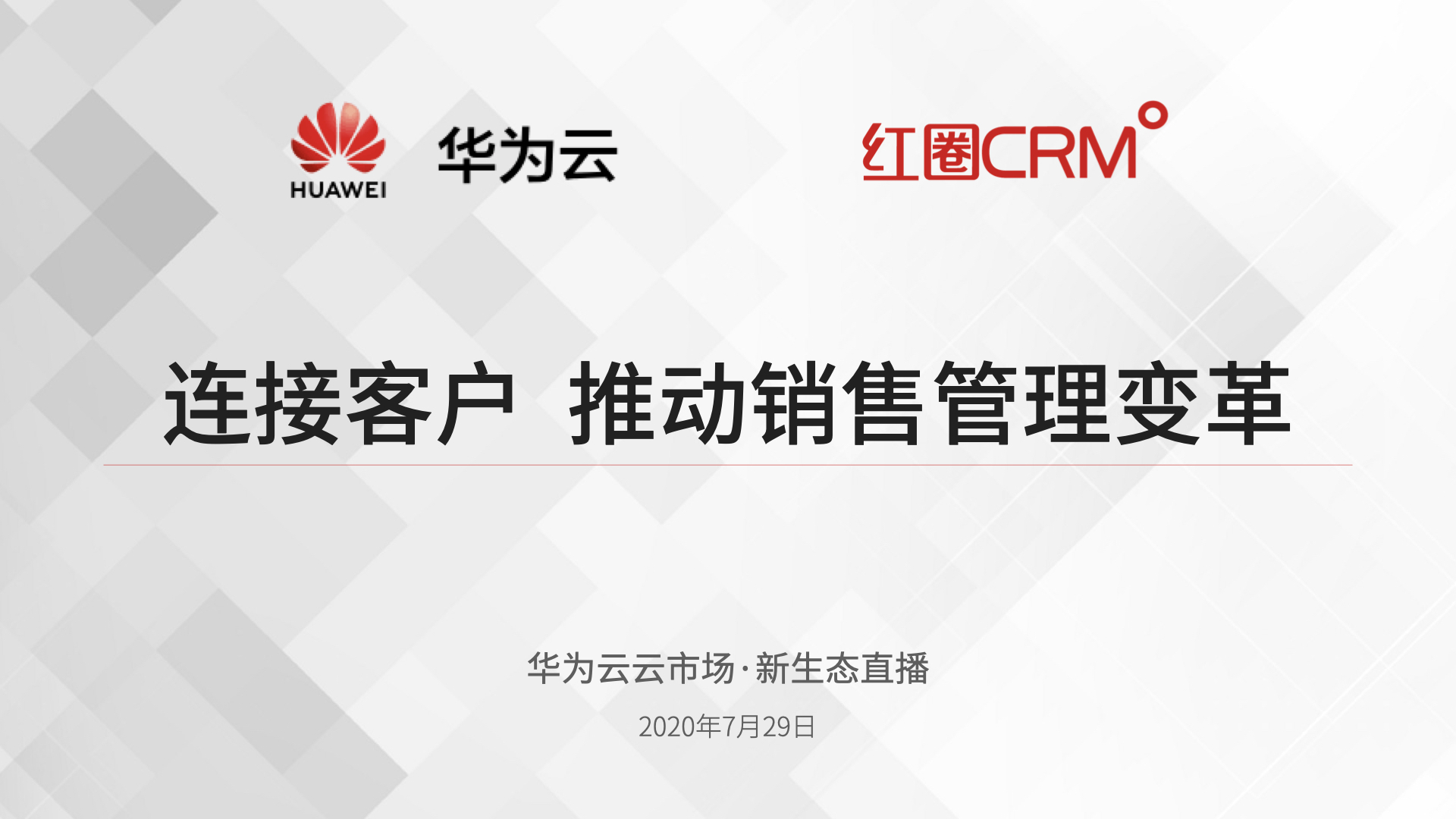 華為云云市場(chǎng)·新生態(tài)直播:連接客戶?推動(dòng)銷售管理變革